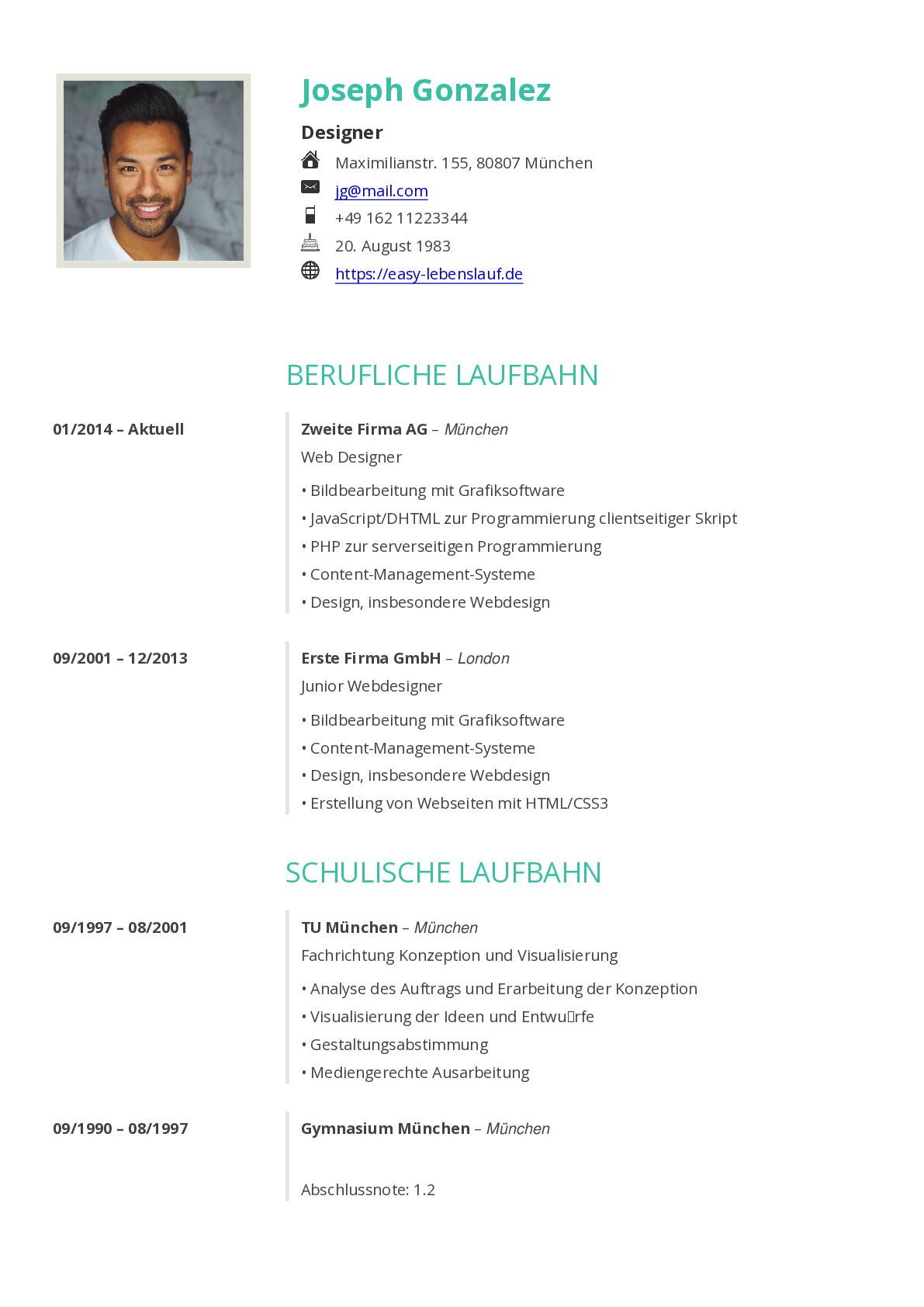 Der professionell erfasste Lebenslauf ist der Schlüssel zum Erfolg. Der Lebenslauf ist ein "lebendes Dokument", das die Entwicklungen und Leistungen in Ihrer Karierre widerspiegelt. Ihre Bewerbung soll Ihnen die größtmöglichen Chancen eröffnen, zu einem Vorstellungsgespräch eingeladen zu werden. Daher muss Ihr Lebenslauf wie folgt sein: